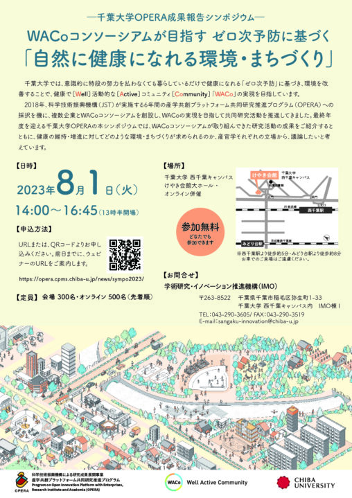 千葉大学OPERA最終年度を迎える今年のシンポジウムでは、WACoコンソーシアムが取り組んできた研究開発活動の成果をご紹介するとともに、健康の維持・増進に対して
