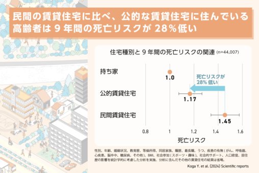 住宅は、健康にとって重要な要素の一つです。住宅には、持ち家と賃貸住宅があり、後者には民間賃貸住宅と公的賃貸住宅があります。
