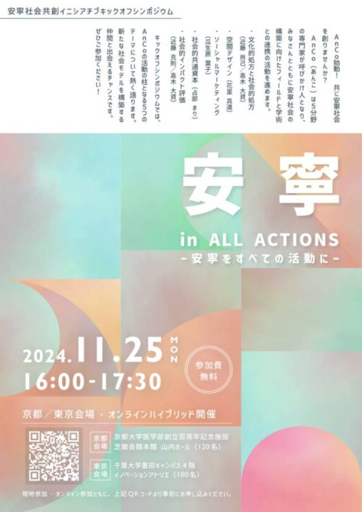 当ラボの花里も呼びかけ人となり、2024年10月に一般社団法人 安寧社会共創イニシアチブ(AnCo:あんこ)を設立しました。 11月25日(月)にAnCoキックオフシンポジウムを開催します!