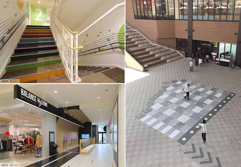 身体活動の増加に寄与する屋内階段の利用を促すため、階段に上りたくなる工夫として、効果音や童謡から記憶を呼び起こすプログラムを盛り込んでいます。 - バランスウォーキング ー歩く速度や姿勢をチェックするプログラムー